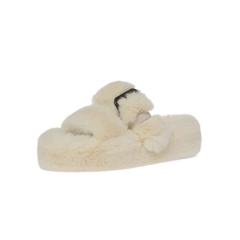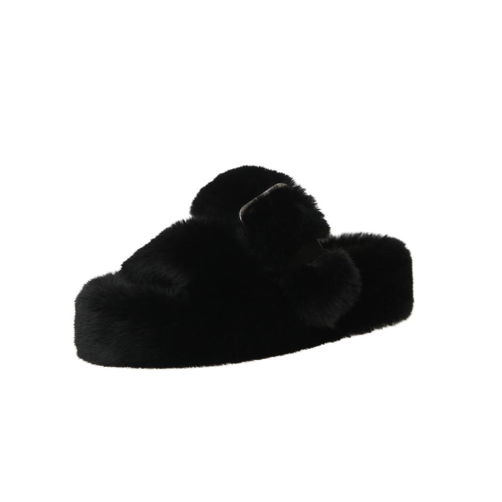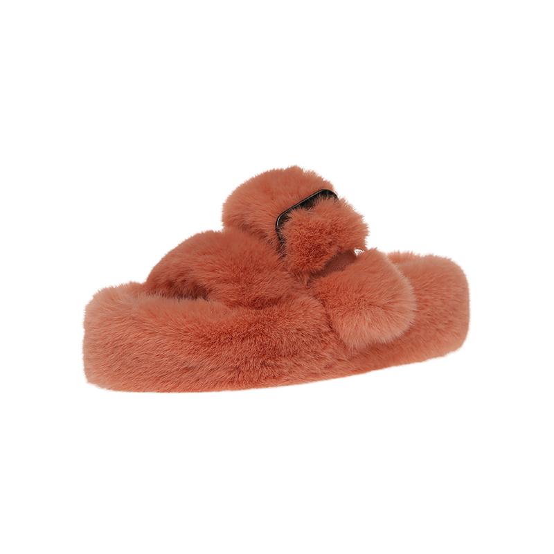 2024 плюшевые тапочки женские осенние новые корейские версии квадратной пряжки импортные торговые шлепанцы с толстой подошвой, чтобы сохранить тепло