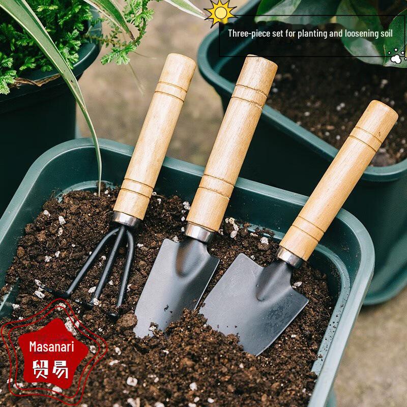 Набор садовых инструментов из трех предметов: Грабли для цветов, лопата для суккулентов, маленькая лопата для посадки и товары для горшечных растений.