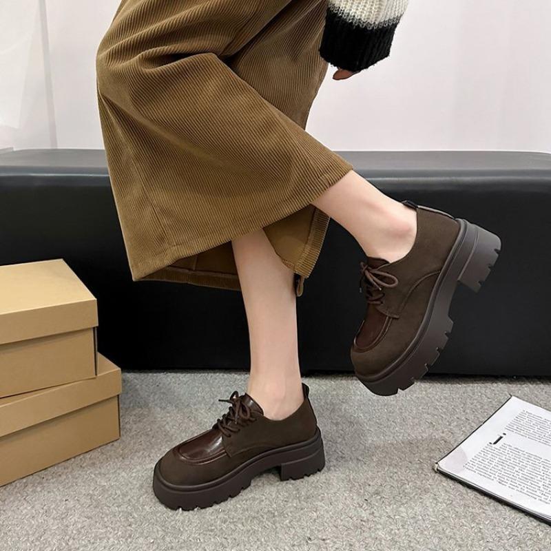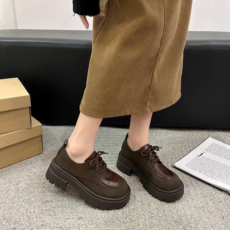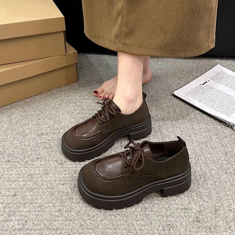 Женские классические туфли-оксфорды на толстой подошве 2024 года, осенние повседневные туфли на шнуровке, новые туфли на плоской подошве, женские туфли на толстой подошве