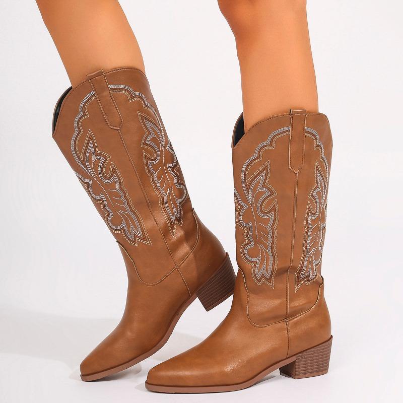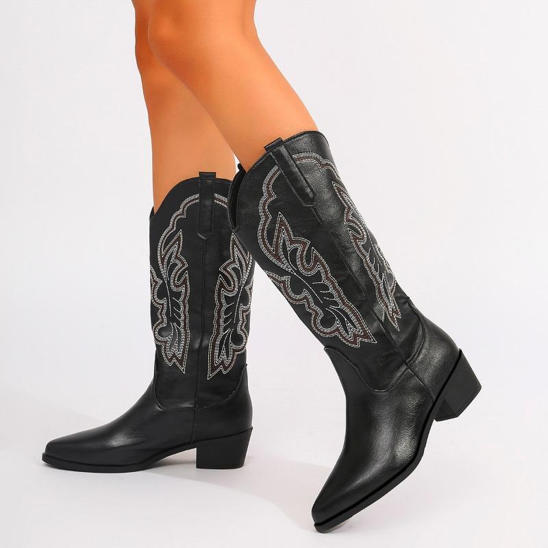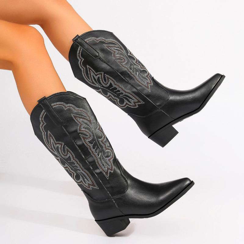 2024 Новые женские сапоги на высоком каблуке с рукавами, модные туфли на толстом каблуке, модные вышитые зимние удобные женские сапоги