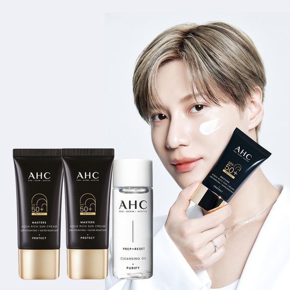 AHC Набор солнцезащитных кремов Masters Aquarich Sun Cream Duo 30 мл X 2 шт. +(ПОДАРОК) Очищающее масло 20мл