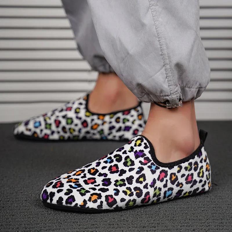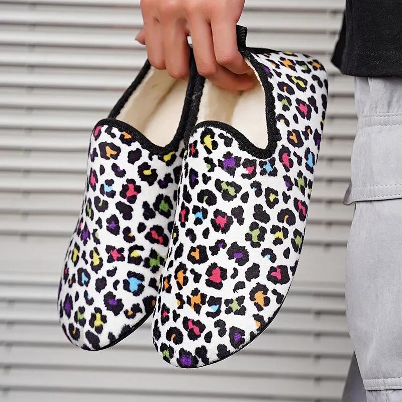 2024 зимние хлопковые мужские леопардовые теплые легкие тапочки без застежек женские плюшевые домашние хлопковые мокасины унисекс зимняя теплая обувь