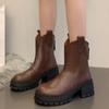2024 Новые зимние модные женские однотонные сапоги на толстой подошве длиной до щиколотки с застежкой-молнией сзади на высоком каблуке длиной до середины икры