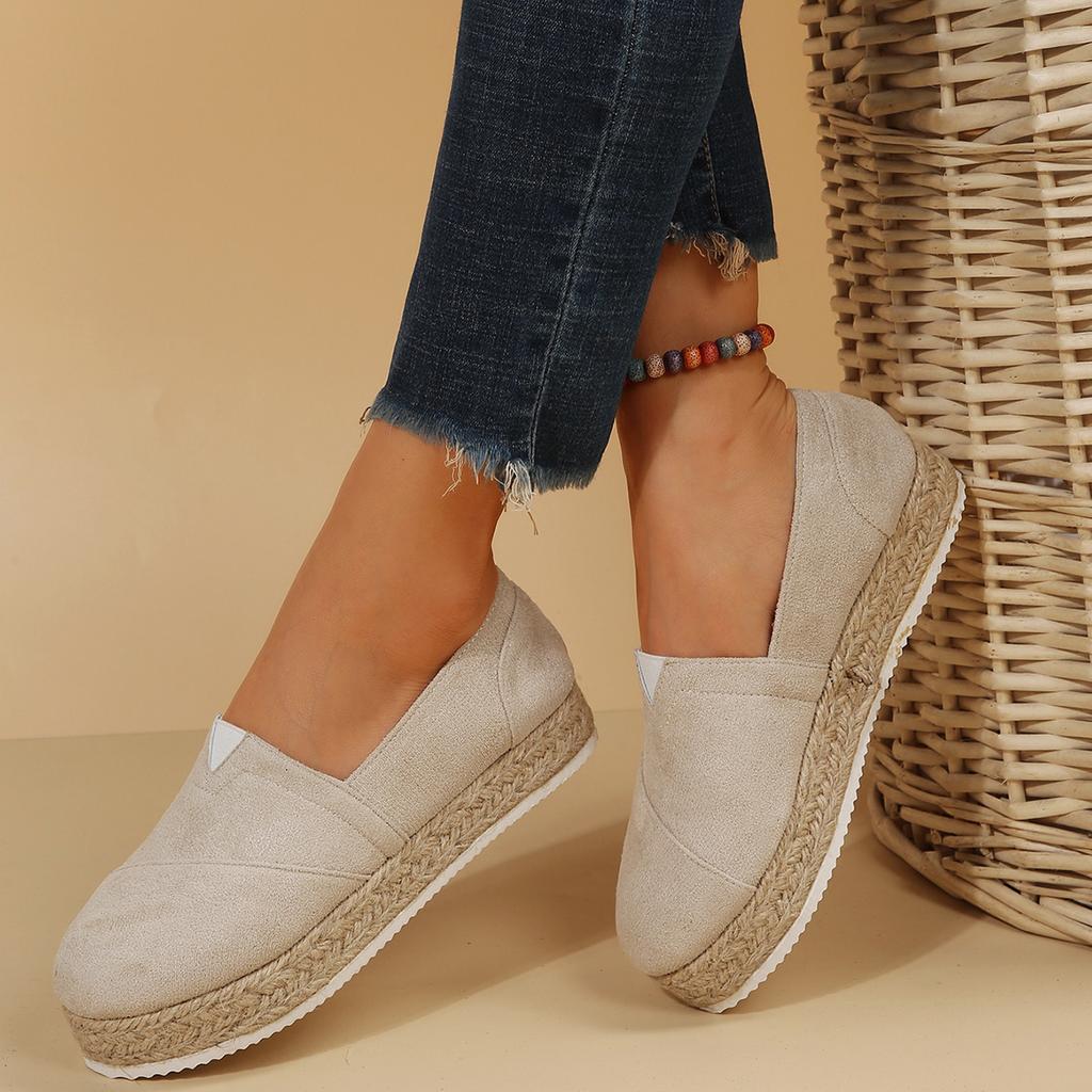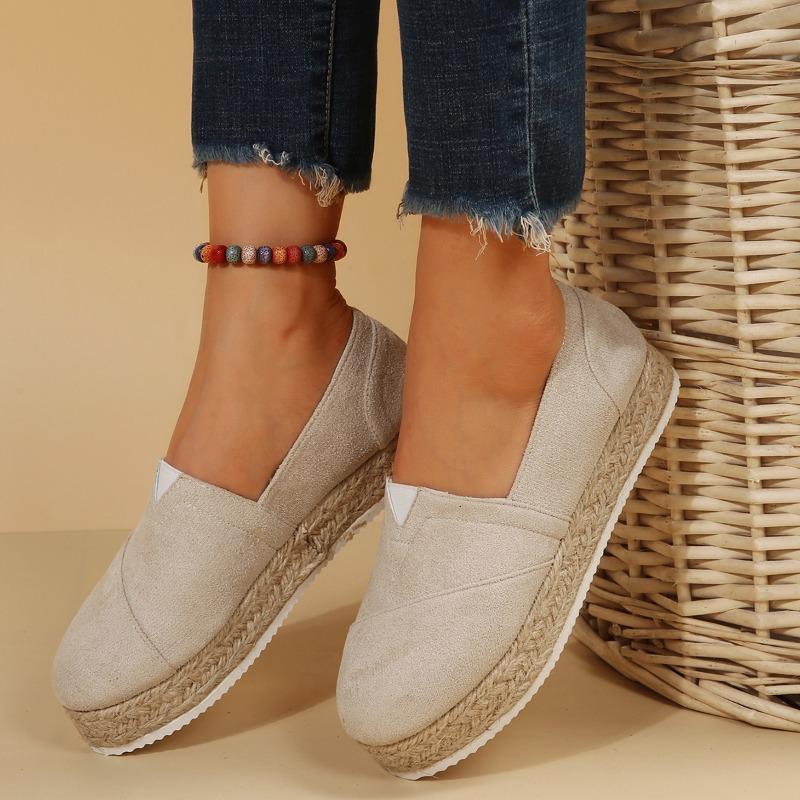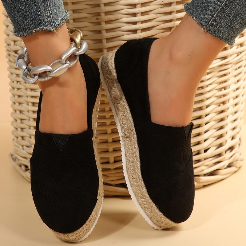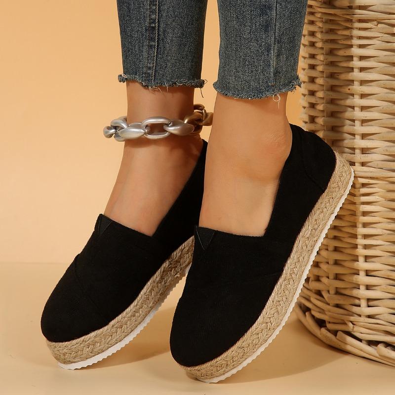 2024 Новые женские туфли на плоской подошве, женская повседневная обувь на платформе, однотонные дышащие эспадрильи на танкетке