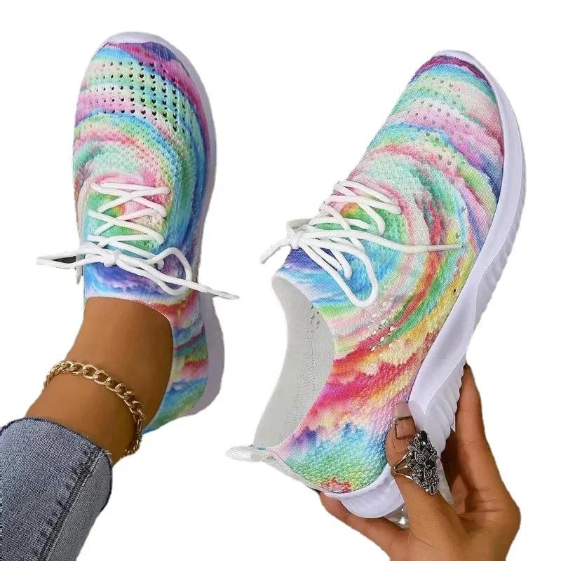 Женские разноцветные сетчатые вязаные кроссовки, осенние легкие дышащие кроссовки с мягкой подошвой, женские туфли-носки без застежек 2024