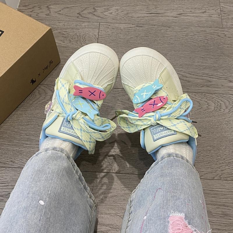 Женские дизайнерские балетки на весну и осень, кроссовки для бега, легкие кроссовки с низким верхом для женщин, милые кроссовки для девочек с рыбками