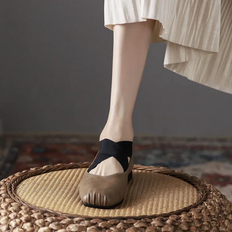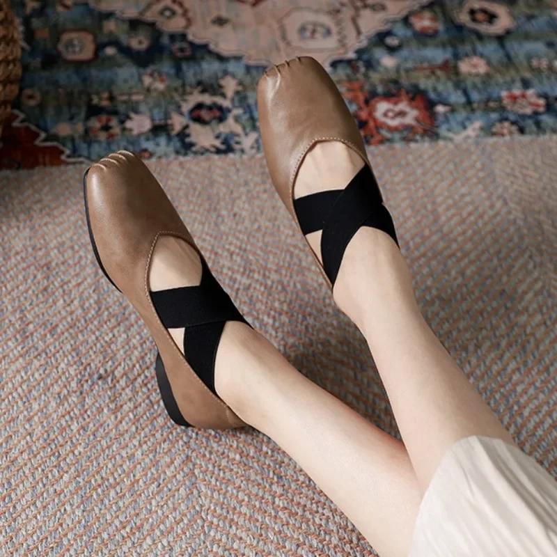Балетки для женщин, новые, французский стиль, мелкий вырез, перекрещивающиеся шнурки, квадратный носок, плоская подошва, одинарные туфли в стиле ретро, туфли Мэри Джейн, балетки