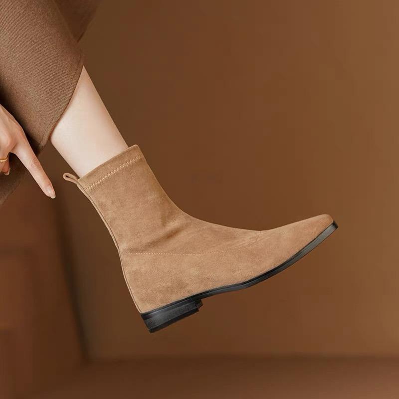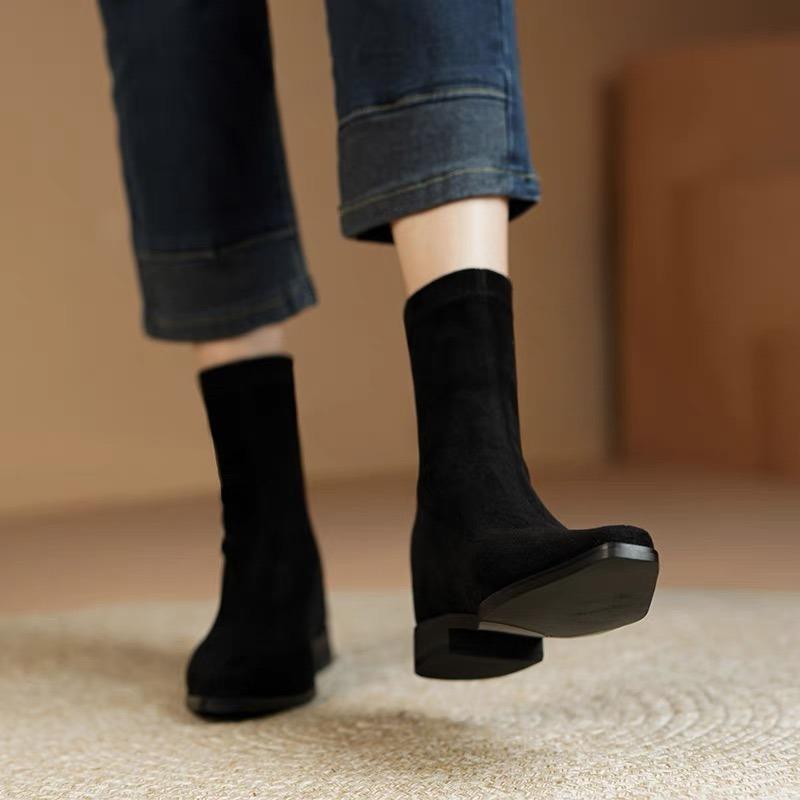 Зимние новые женские замшевые удобные однотонные короткие теплые элегантные модные ботинки 2024 года