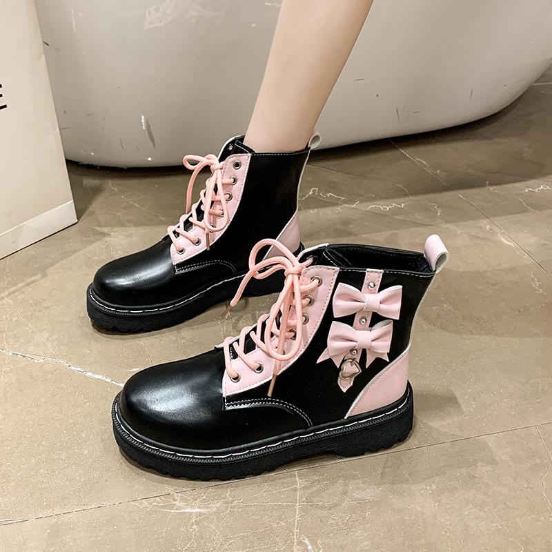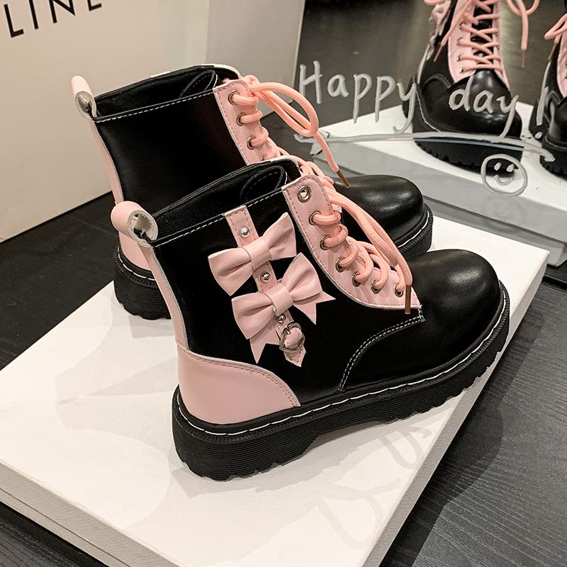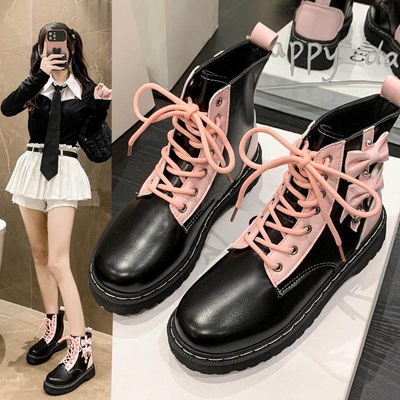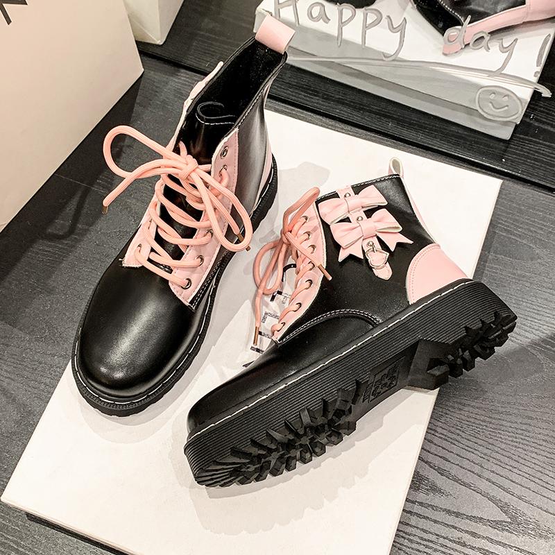 Женские сапоги 2024 года. Универсальные и удобные женские короткие сапоги на толстой подошве. Элегантные модные сапоги со шнуровкой и бантом.