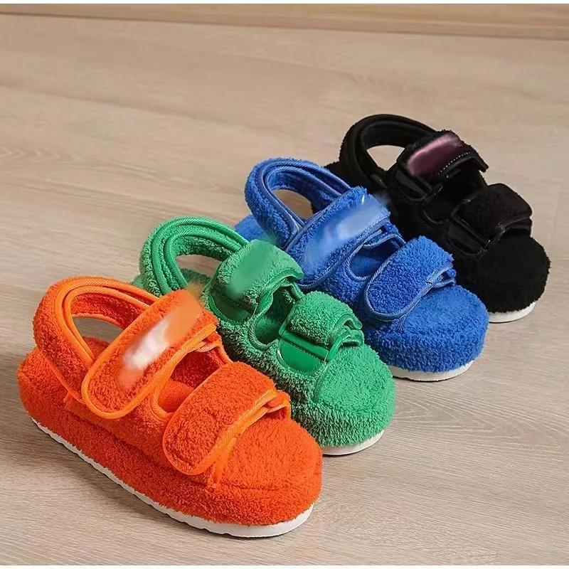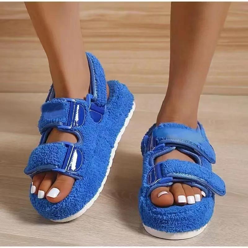 Плюшевые сандалии для женщин 2024 года, новые модные туфли на платформе в стиле ретро, плоские пушистые повседневные туфли с круглым носком, женские легкие сандалии