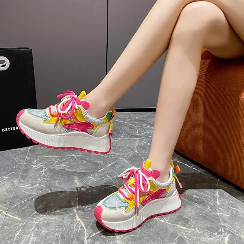 Женская легкая нескользящая спортивная обувь, женские летние дышащие кроссовки на платформе, женская повседневная удобная вулканизированная обувь
