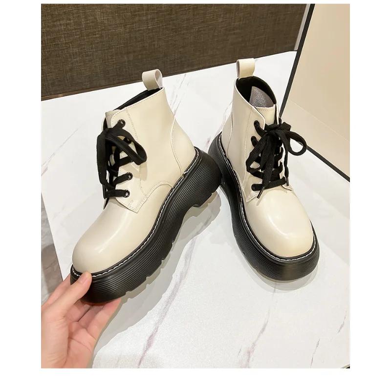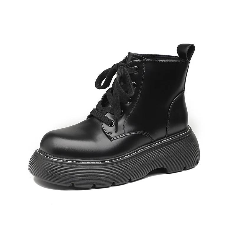 Женские ботинки, британские короткие ботинки с толстой подошвой и высокой посадкой, новые женские мягкие кожаные нескользящие короткие ботинки на осень и зиму 2024 года