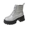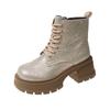 2024 Sequin Diamond Короткие сапоги Женские Осенне-Зимние Британские Модные Сапоги На Высоком Толстом Каблуке Ботинки На Шнуровке Повседневная Обувь Для Вечеринок На Открытом Воздухе