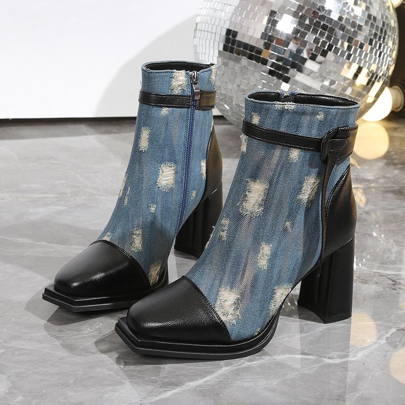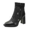 2024 Осень/Зима Популярные Модные Женские Сапоги Новые Модные Квадратные Головки Молнии Боковые Высокие Каблуки Универсальные Модные Женские Сапоги — купить товар онлайн с бесплатной доставкой по всему миру!