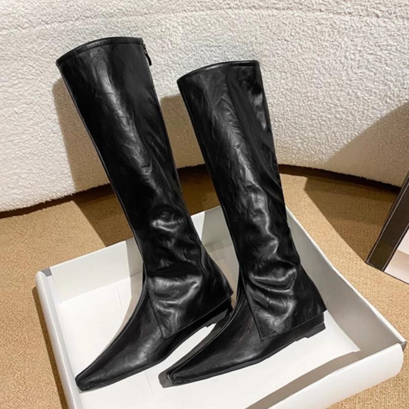 2024 Модные женские сапоги на плоской подошве в стиле ретро, элегантные и модные новые однотонные длинные модные сапоги