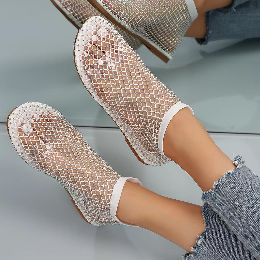 Женские новые роскошные брендовые сандалии с круглым носком и плоской подошвой, короткие полые сапоги, сексуальные туфли с плоским дном Water Diamond, размеры 35-44