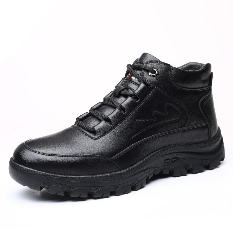 НОВЫЕ мужские туфли из натуральной кожи и хлопка, зимние плюшевые теплые кожаные туфли из утолщенной шерсти, противоскользящие, модные туфли для отдыха с высоким берцем для мужчин
