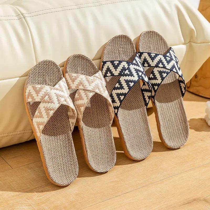 Льняные тапочки для домашнего использования на толстой подошве, летние, из плетеной травы, из ротанга, для мужчин и женщин, для дома, в помещении, нескользящие, против запаха, для ног — купить товар онлайн с бесплатной доставкой по всему миру!