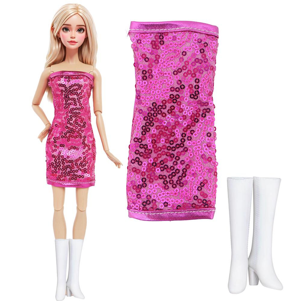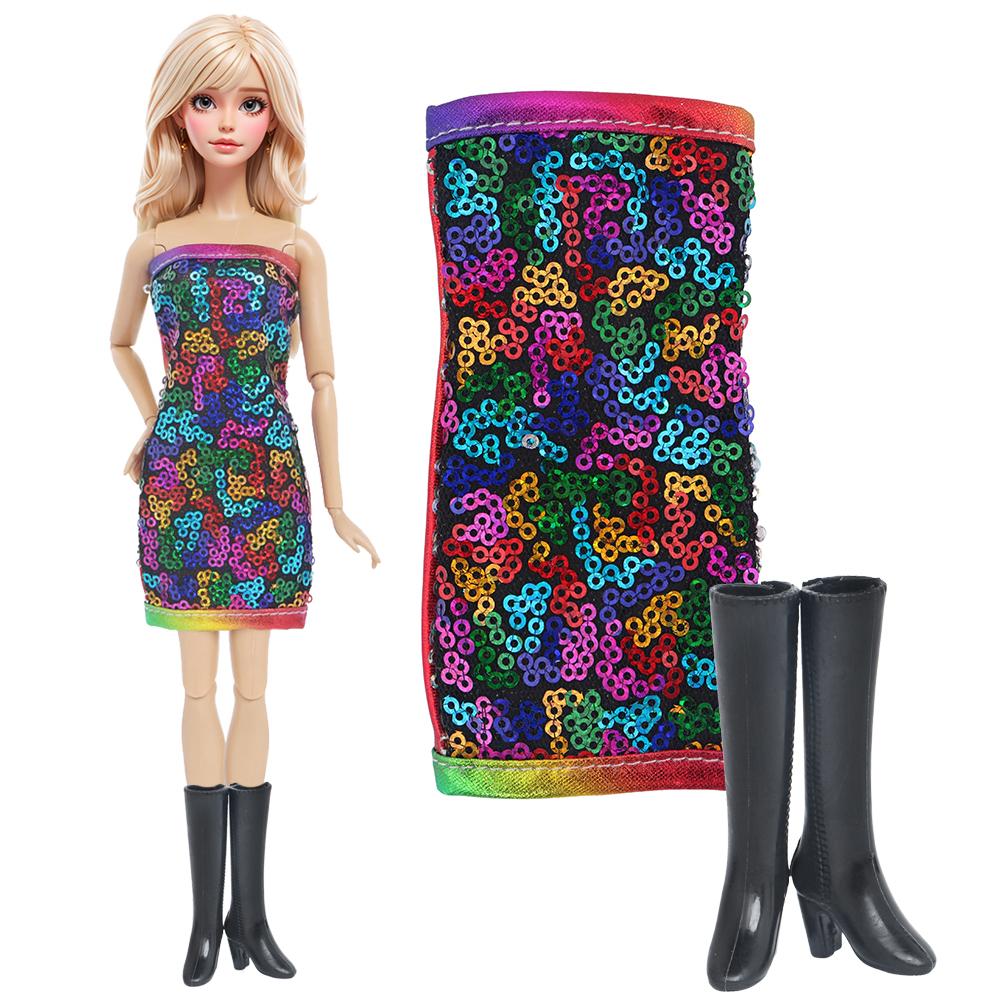 Модное платье для куклы Блестящее платье для куклы 30 см 11,5'' Мини-платье с пайетками с туфлями на высоком каблуке Сапоги Детские игрушечные аксессуары Подарок