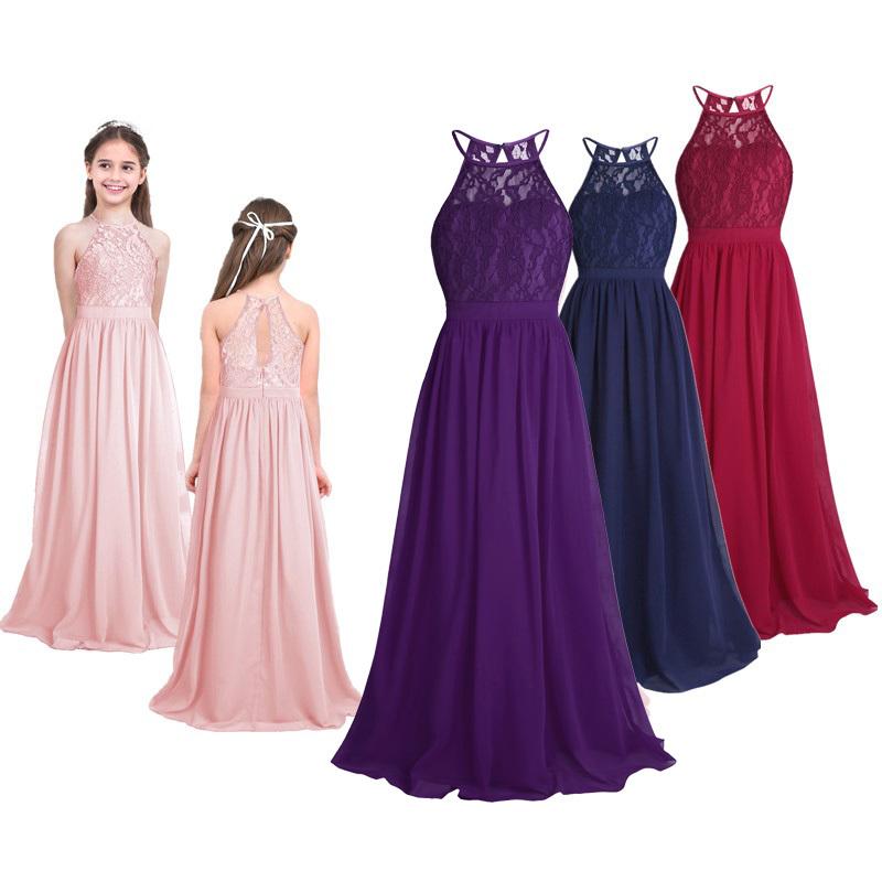 Шифоновое платье с лямкой на шее для девочек, кружевное верхнее платье с цветочным принтом, пышное платье принцессы на свадьбу, подружку невесты, день рождения