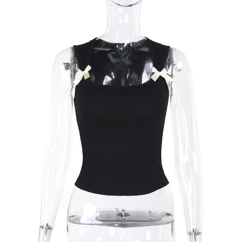 Y2K женские топы-бантики с широкими бретелями, бандажные топы, сексуальные укороченные топы с глубоким вырезом, женские топы-безрукавки