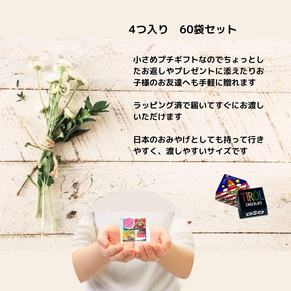 Маленький подарок 4 кусочка тирольского шоколада x 60 пакетиков. - Уже упакован и готов к вручению.・Небольшой подарок, который можно легко вручить. ・Многие виды тирольского шоколада подобраны случайным образом.Ингредиенты: Сахар, растительное масло, лактоза, соевая мука, крахмальный сироп, восстановленный крахмальный сироп, цельное сухое молоко, какао-масло, обезжиренное сухое молоко, желатин, крахмал, клейкая мука, трегалоза, целлюлоза, эмульгатор (полученный из сои), осветлитель, желирующий агент (пектин), аромат.