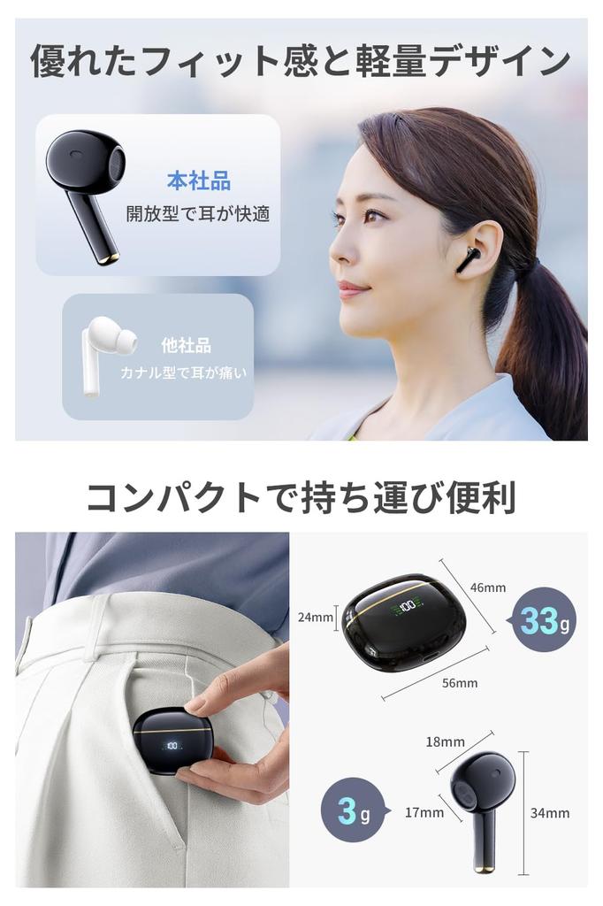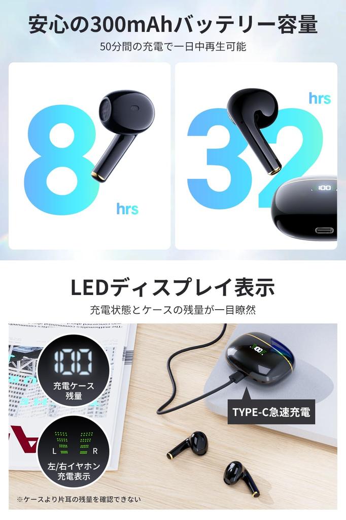 🚀 [Быстрая зарядка Type-C, сверхлегкая конструкция и небольшой размер] Когда наушники полностью заряжены, вы можете разговаривать или слушать музыку непрерывно до 8 часов. При использовании с зарядным чехлом вы можете пользоваться устройством до 32 часов без необходимости частой подзарядки.. 💡Использует порт Type-C, что удобно, так как нет ограничений по направлению, в котором можно вставить кабель. Благодаря быстрой зарядке полная зарядка занимает всего 50 минут.. Наушники имеют эргономичный дизайн, они небольшие и легкие.. Конструкция вкладышей идеально повторяет форму ваших ушей, обеспечивая удобную посадку, и вы не почувствуете никакого веса даже при длительном ношении, к тому же они легкие как перышко.