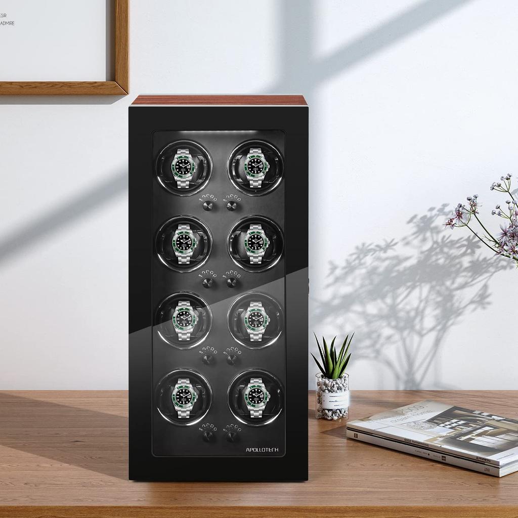 Winding Machine Watch Automatic Winding Machine Watch Case LED Light Holds 8 Built-in (Black, Watches)