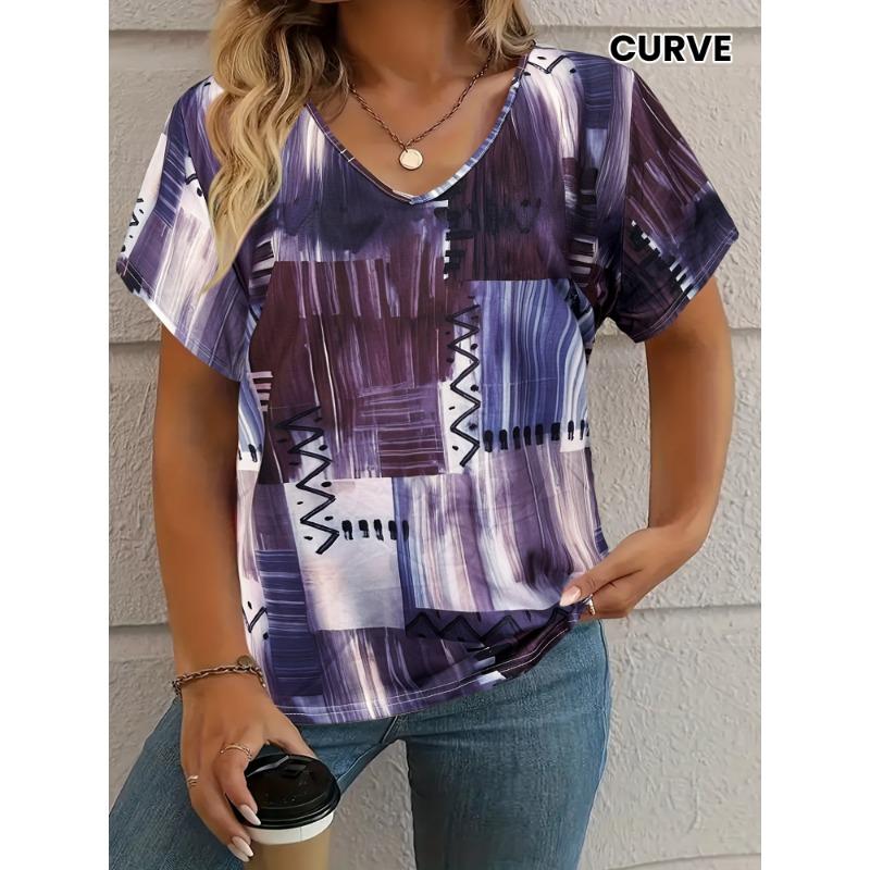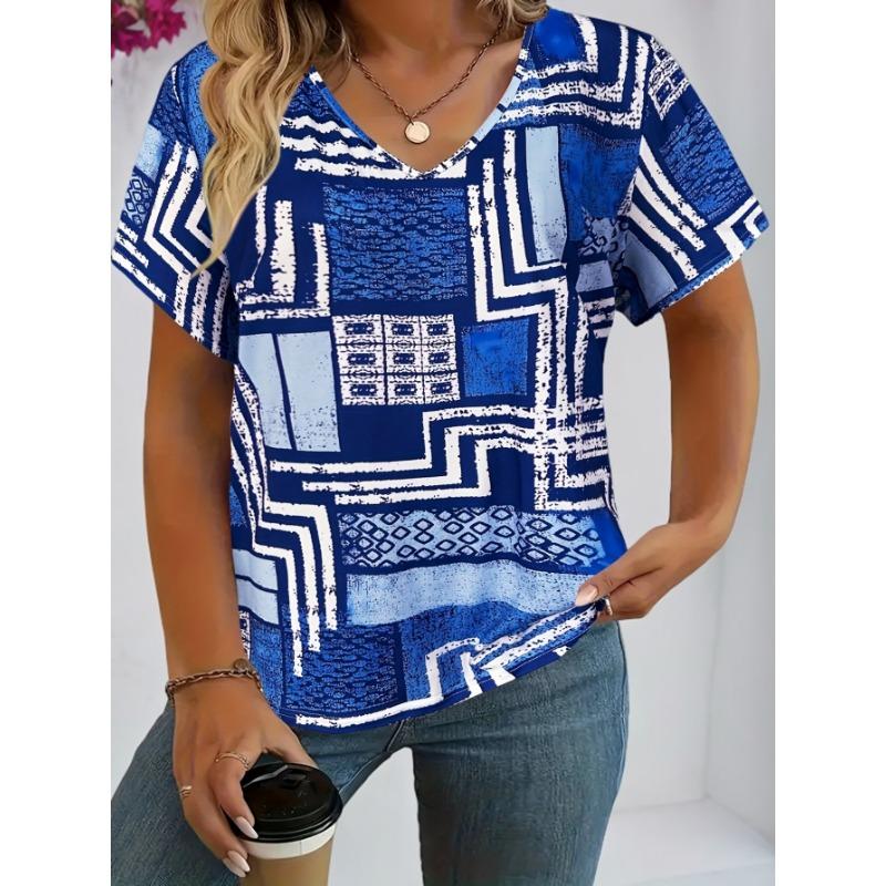 Футболка женская летняя для отдыха элегантная простая с v-образным вырезом и коротким рукавом красная клетчатая рубашка свободная повседневная женская футболка
