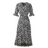 Весна-лето женские длинные платья с v-образным вырезом и короткими рукавами из шифона с принтом и оборками по подолу, S-XXL