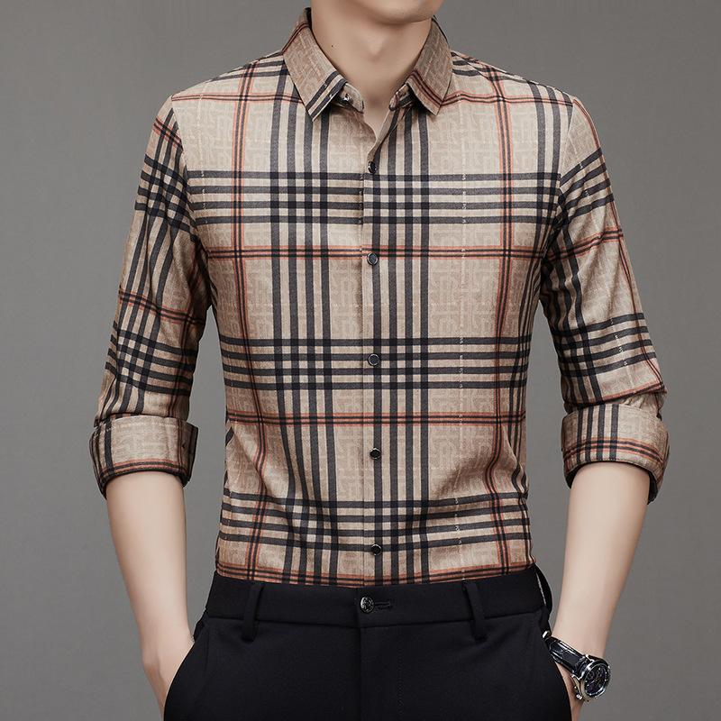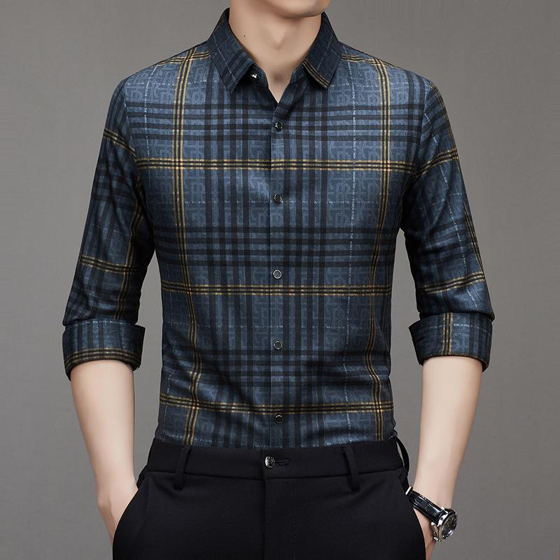 Рубашка с длинным рукавом, мужская свободная весенне-осенняя новая мужская рубашка в клетку, эластичная рубашка без глажки