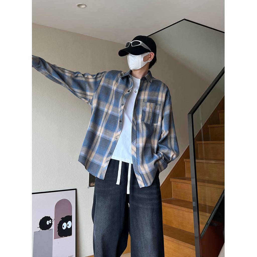 Винтажная рубашка в клетку бордового цвета High Street, мужская, та же модная, повседневная, свободная, солнцезащитная, с длинными рукавами