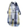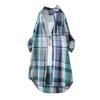 Женская рубашка с лацканами, длинным рукавом, цветной клетчатый принт, рубашка с карманом, свободный крой, однобортная рубашка средней длины
