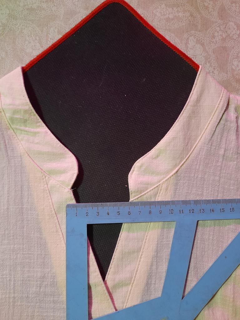 Ткань тонкая и легкая, летящая, не электризует хоть и синтетика, рукава на защипа и можно из полноценного сделать 3/4. Горловина на завязках, но это больше декор .