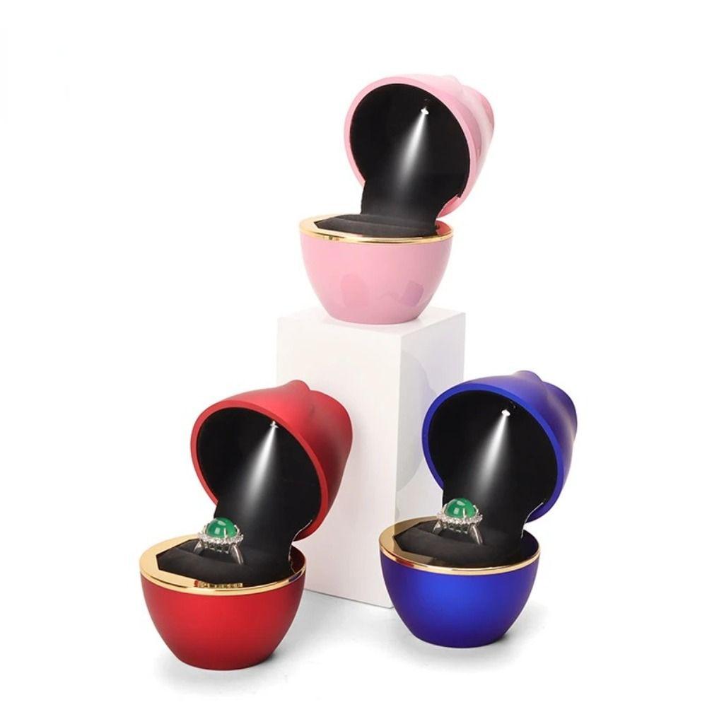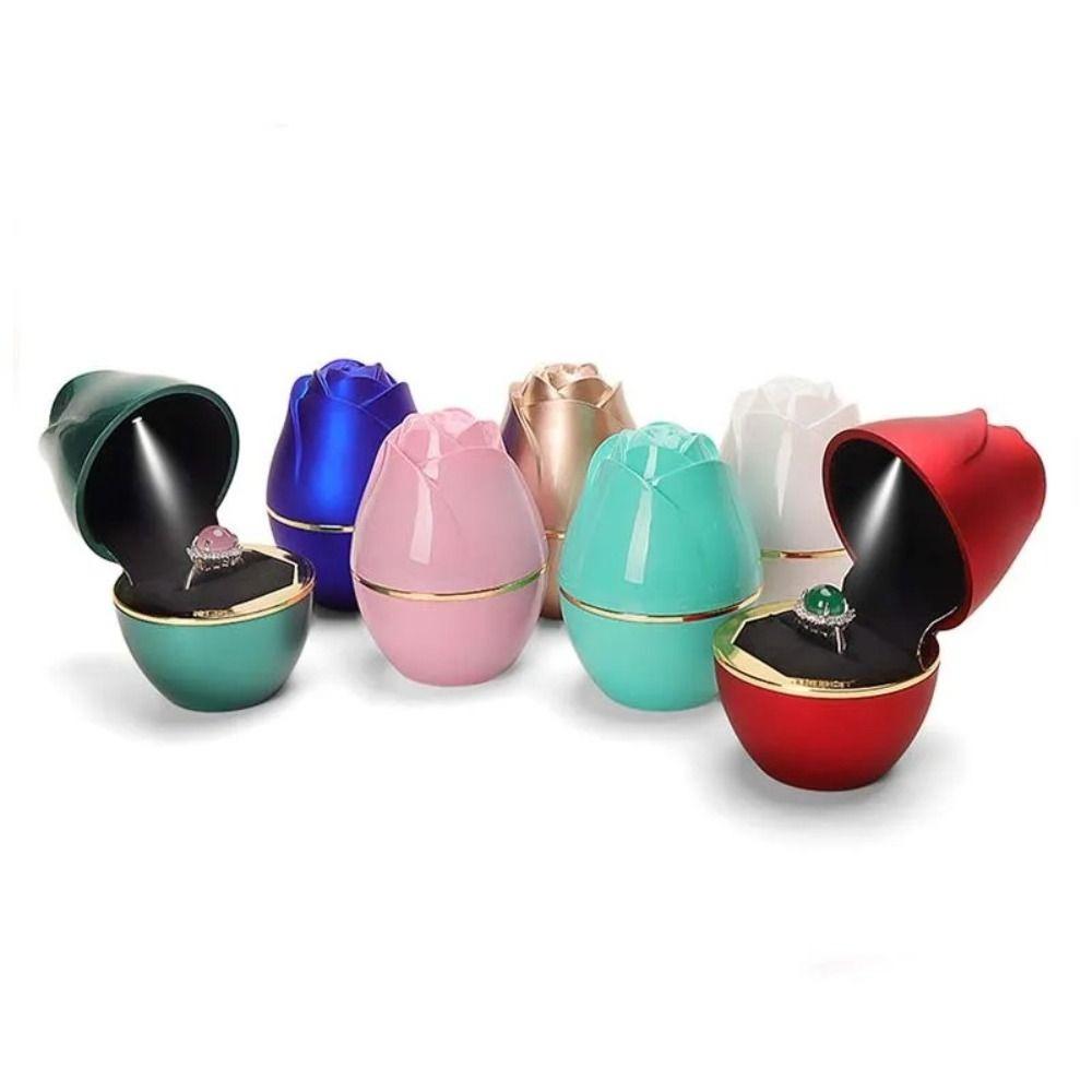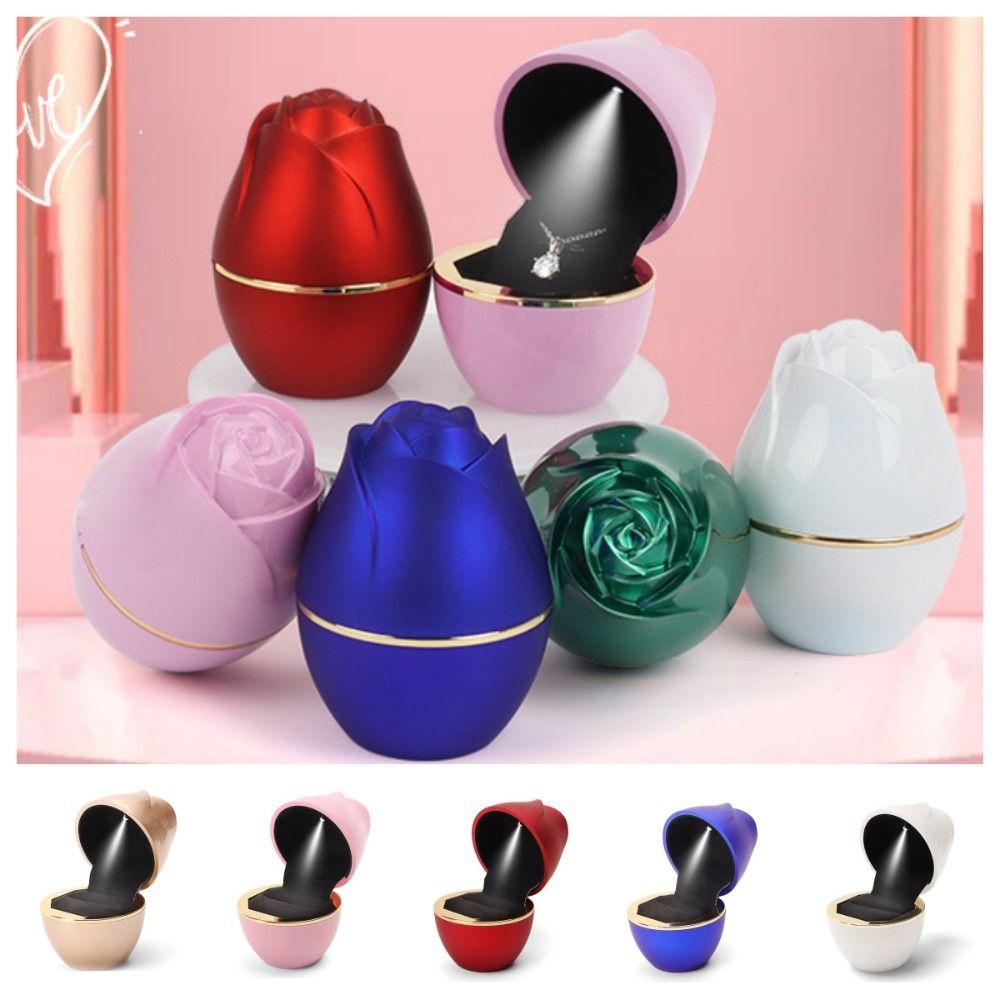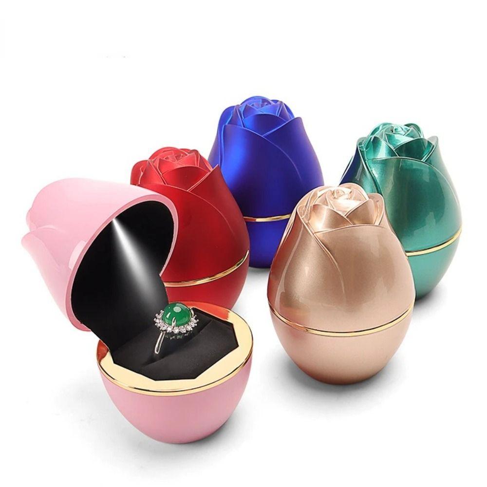 Бархатная роза шкатулка для колец пылезащитный флокированный футляр для ювелирных изделий светодиодная подсветка шкатулка для колец свадьба