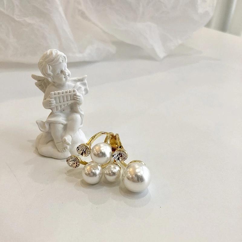 1 шт. корейская версия Ins Design Sense с бриллиантами, геометрическое преувеличение, большой жемчуг, неправильное отверстие, кольцо на указательный палец, холодный ветер, женщина