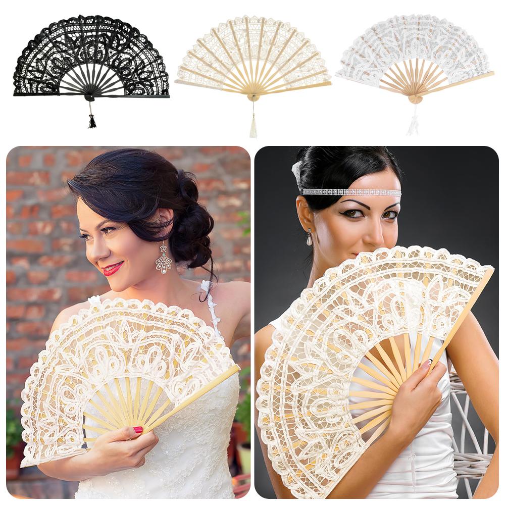 Хлопковый ручной веер, кружевной складной веер, бамбуковый веер в винтажном стиле для танцев в линию, вечеринок и мероприятий