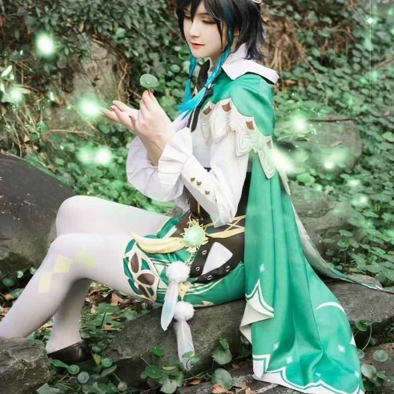 Genshin Impact Venti Косплей Костюм Униформа Парик Обувь Косплей Аниме Китайский Стиль Хэллоуин Костюмы Для Женщин Игра Wendi Windy