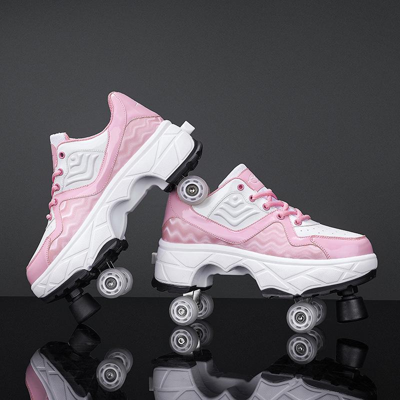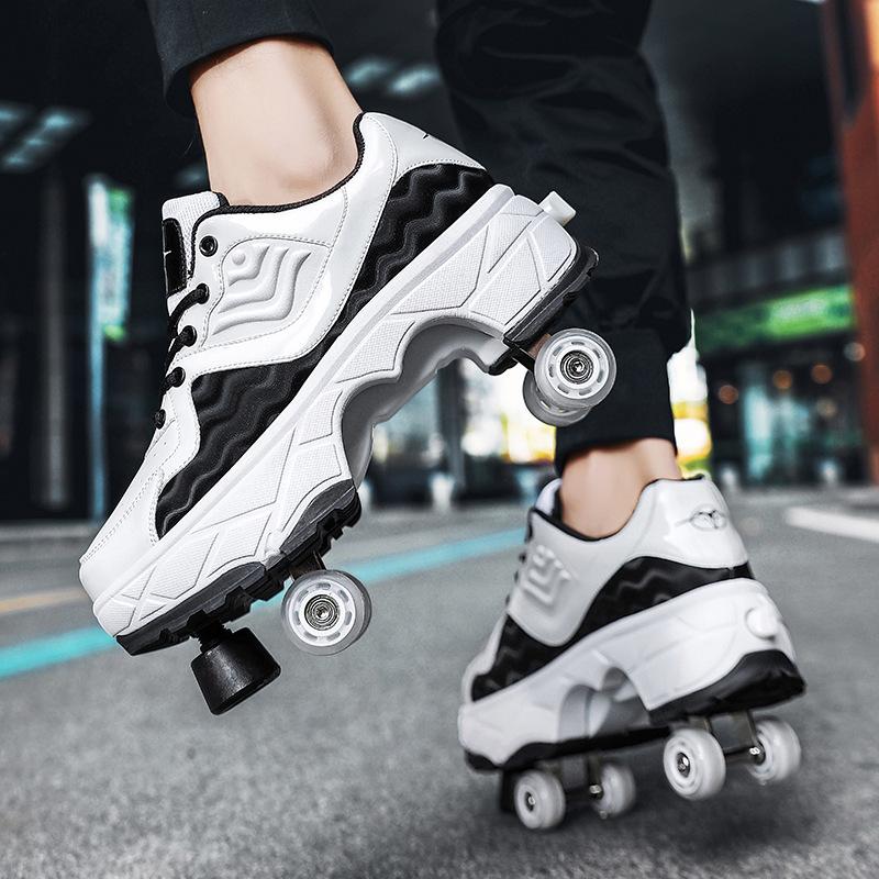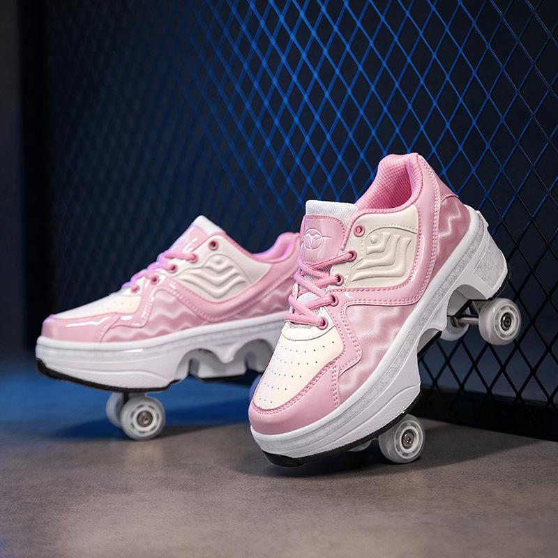 Детская деформационная обувь Обувь для бегунов Четырехколесные взрослые коньки Мужские и женские двухрядные роликовые коньки Роликовые коньки двойного назначения