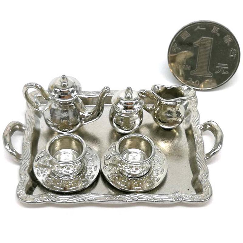 10 шт. 1: 12 кукольных предметов мебели, миниатюрная столовая посуда, набор металлических чашек и тарелок