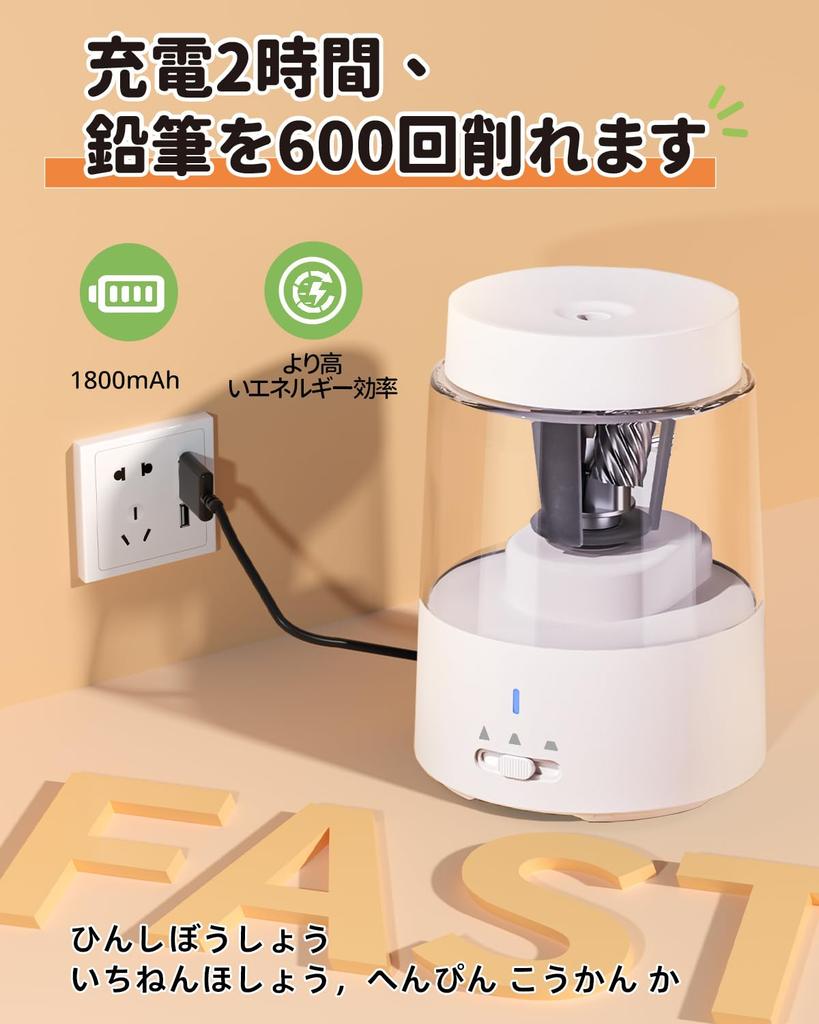 【Быстрая зарядка】В комплект точилки для карандашей входит кабель для зарядки USB Type-C. (включены). Вы можете заряжать его, пока точите карандаш.. Точилка для карандашей работает от литиевого аккумулятора большой емкости и может использоваться от 300 до 600 раз после зарядки в течение 2 часов.