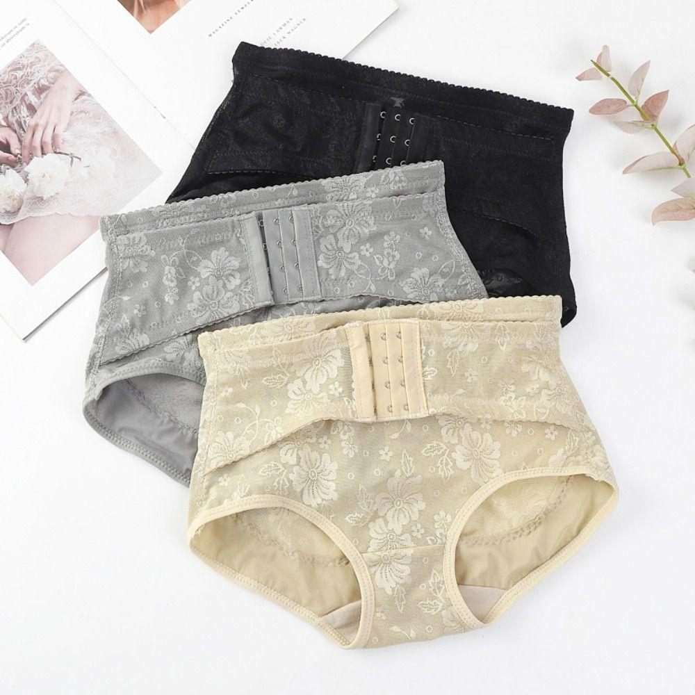 Mid Waist Postpartum Body Shapers Lace Flower Slimming Buckle Shapers Butt Lifter Briefs Female