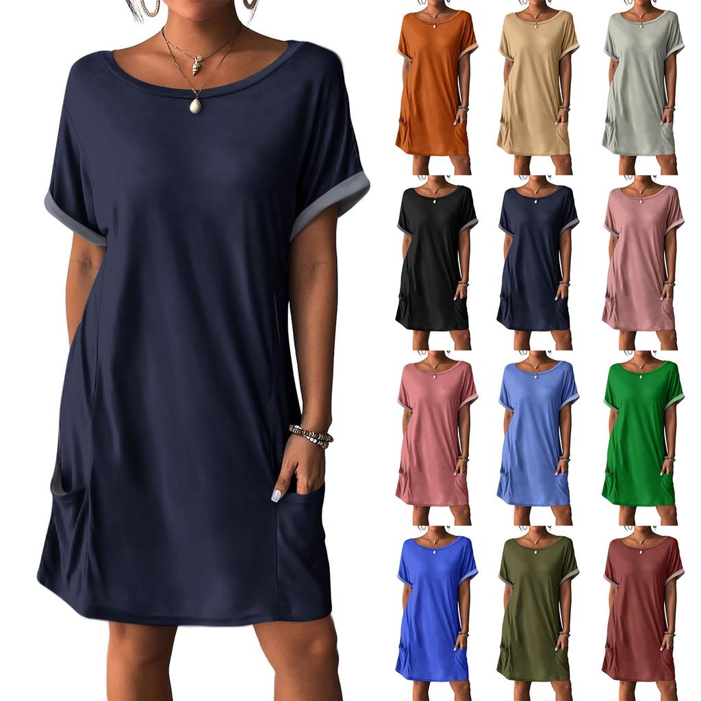 Женские платья Футболки Платья с карманами Однотонные повседневные пляжные платья
