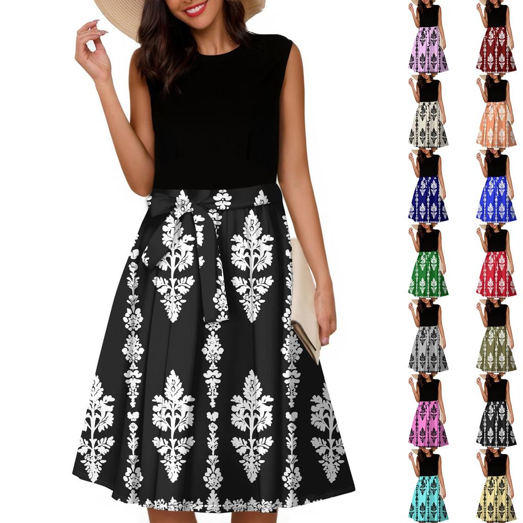 Женское модное повседневное короткое платье без рукавов со шнуровкой и круглым вырезом — купить товар онлайн с бесплатной доставкой до всему миру!
