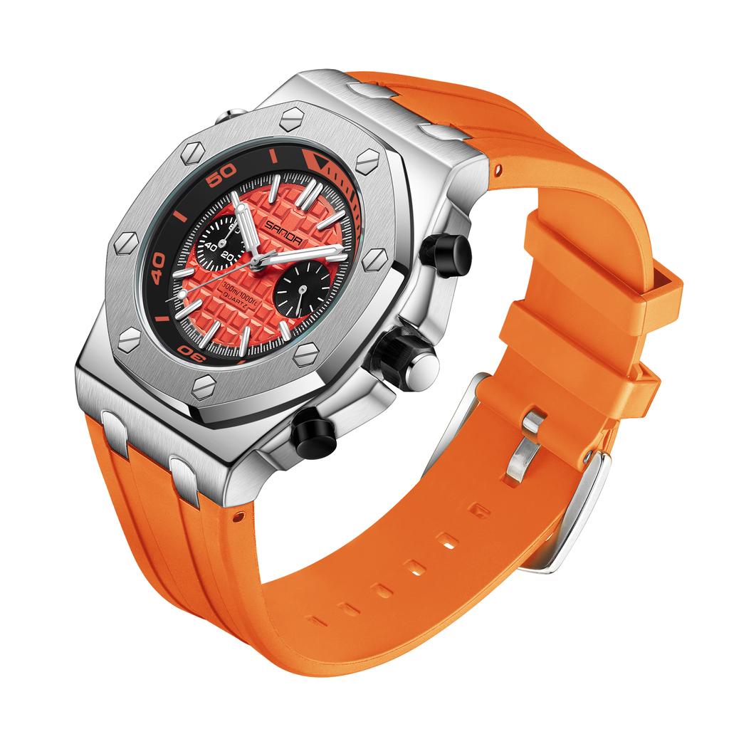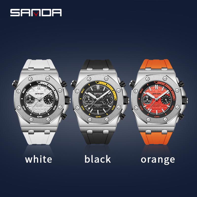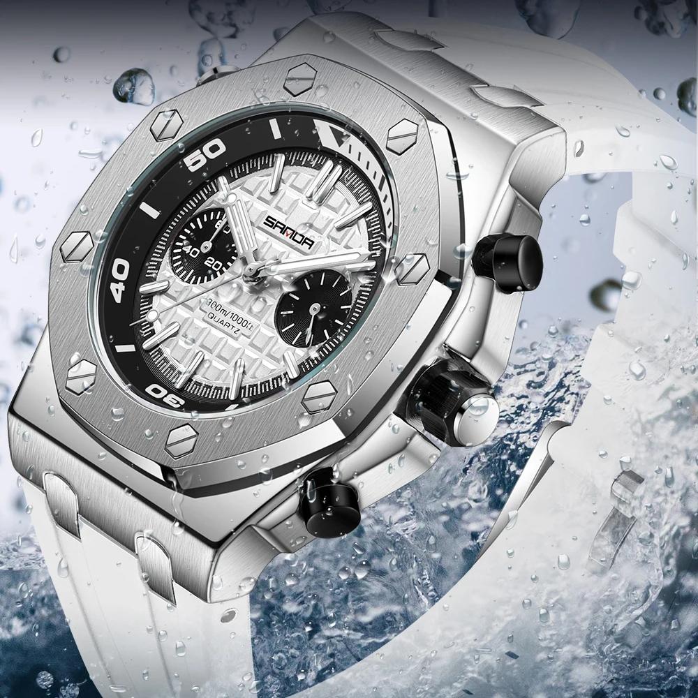SANDA Королевские модные повседневные мужские часы с большим циферблатом, черные силиконовые кварцевые наручные часы, классические мужские часы