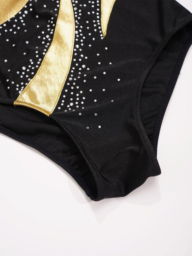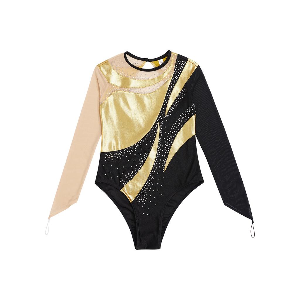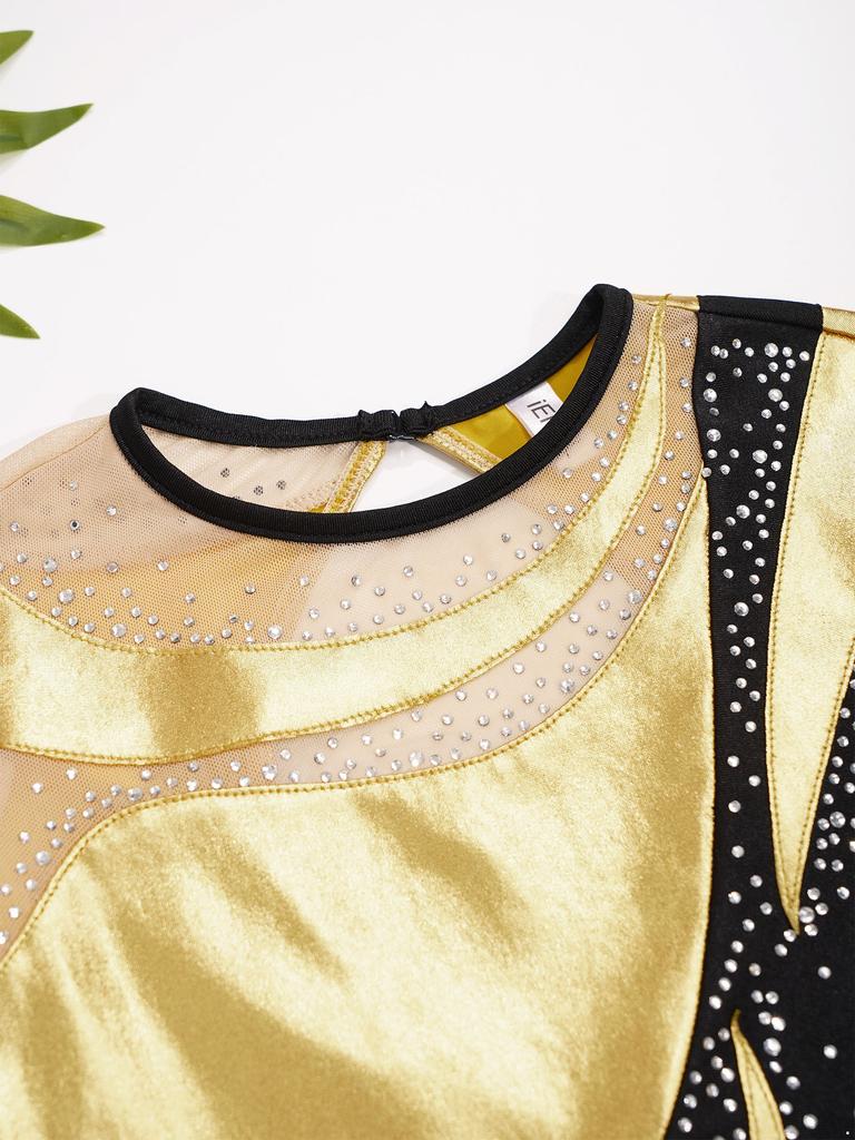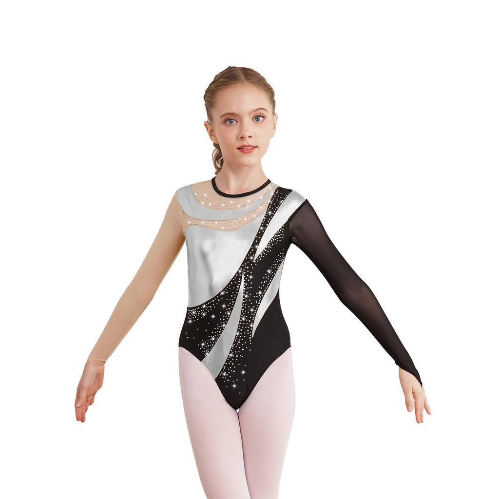 Детский блестящий гимнастический купальник для девочек, сетчатый комбинезон с замочной скважиной сзади и металлическим вырезом на коньках, сетчатый комбинезон для катания на коньках