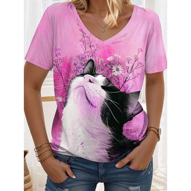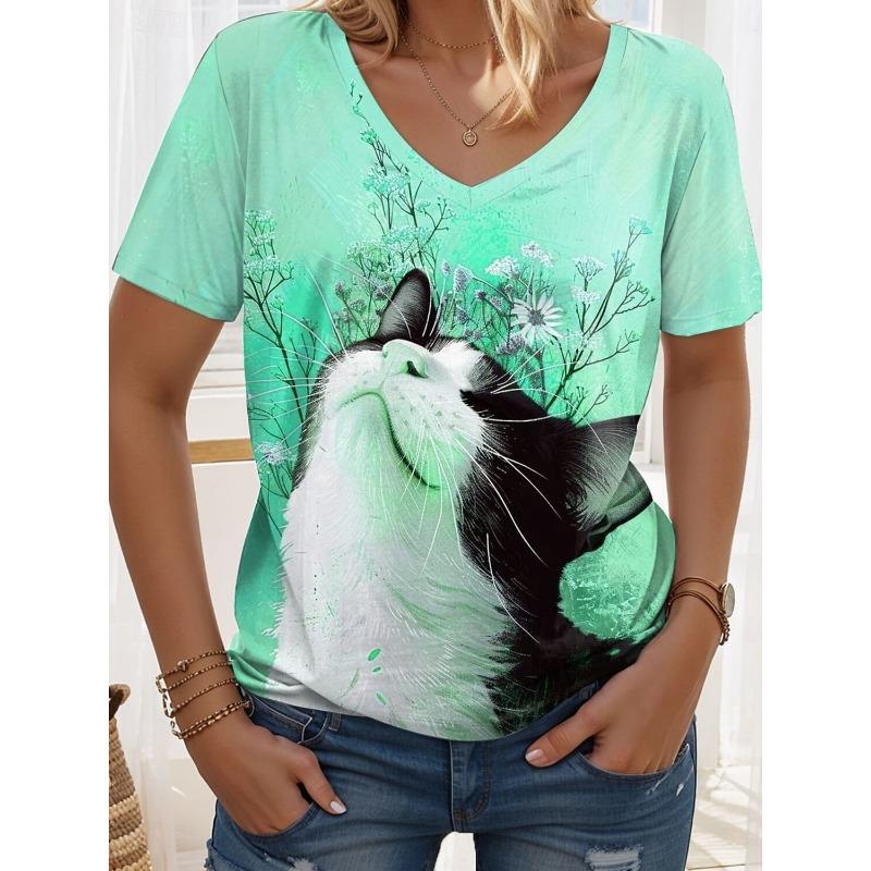 3D-печать, женские футболки, V-образный вырез, свитера, свободные, короткий рукав, длинная футболка, повседневная, диагональный воротник, уличная одежда
