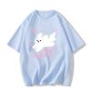 Футболки из чистого хлопка, женские, летние, с милым мультяшным принтом, в стиле хип-хоп, повседневные, в стиле Харадзюку, большие, с коротким рукавом, синие, для девочек 2010 года