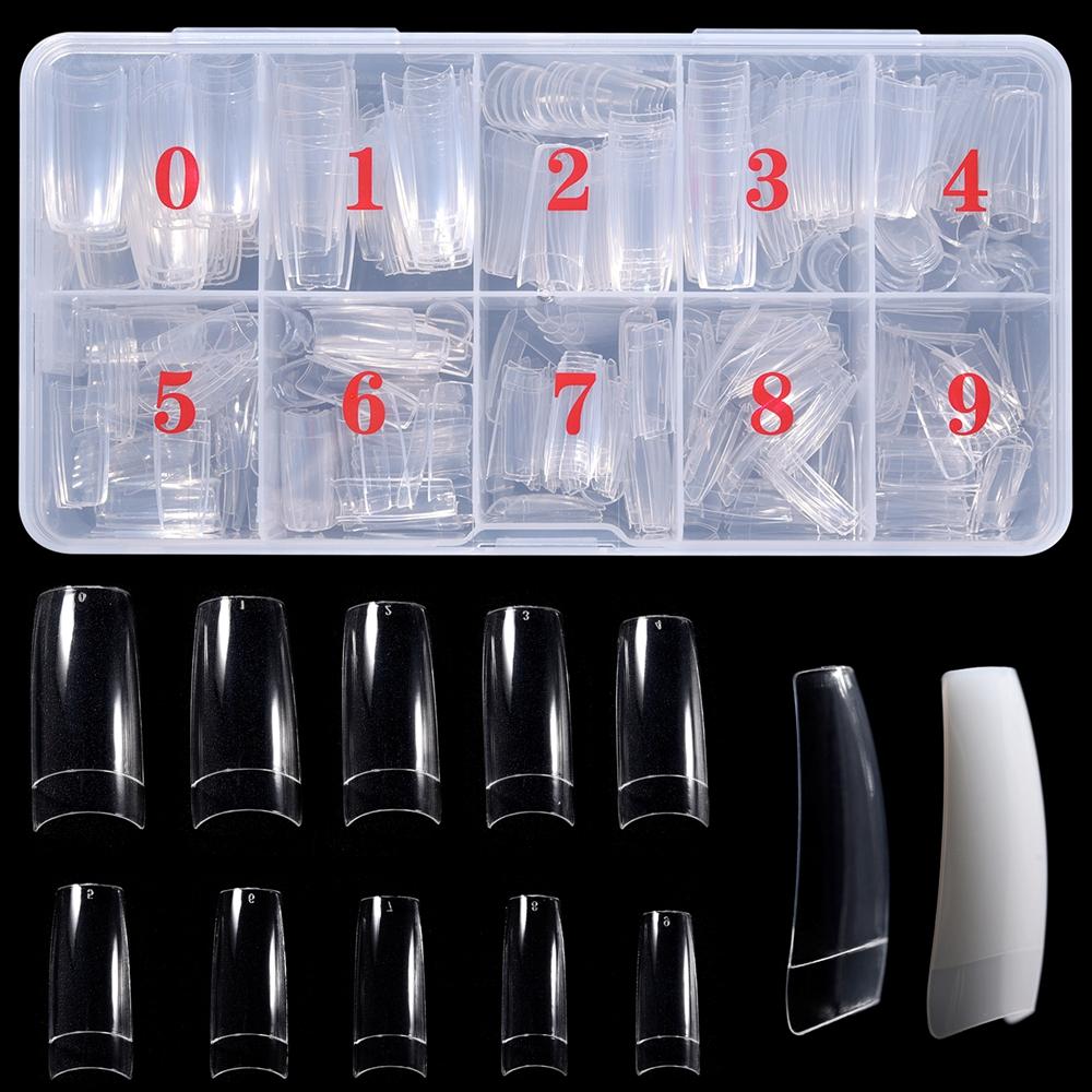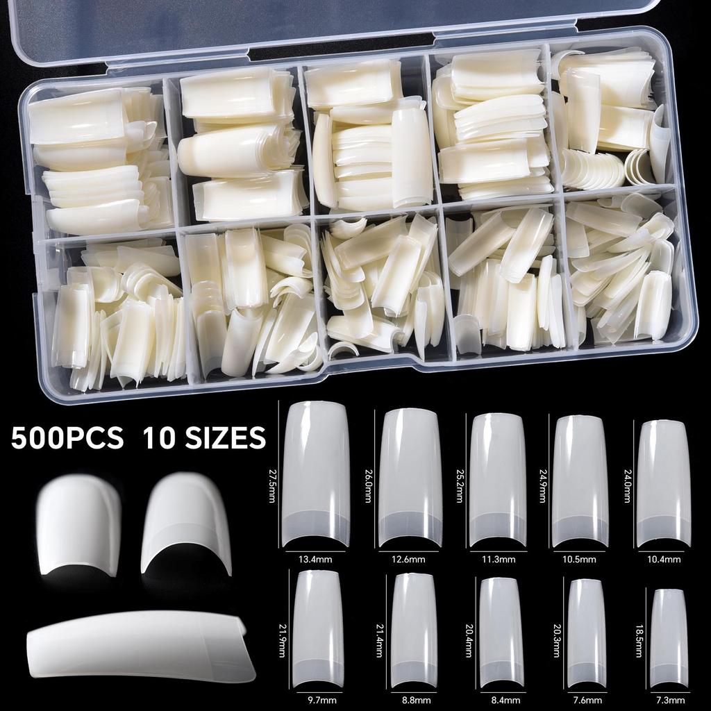 500 шт. прозрачных/натуральных французских квадратных типсов для ногтей, акриловые искусственные полунакладные хлопья, типсы для ногтей 10 размеров с прозрачной пластиковой коробкой