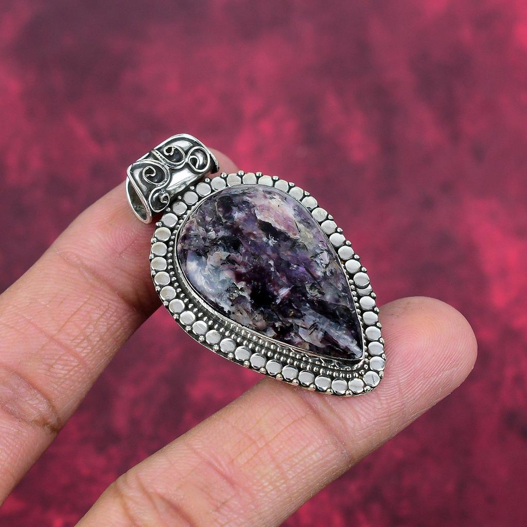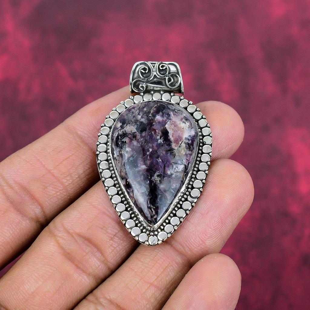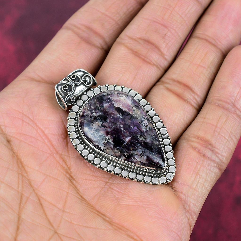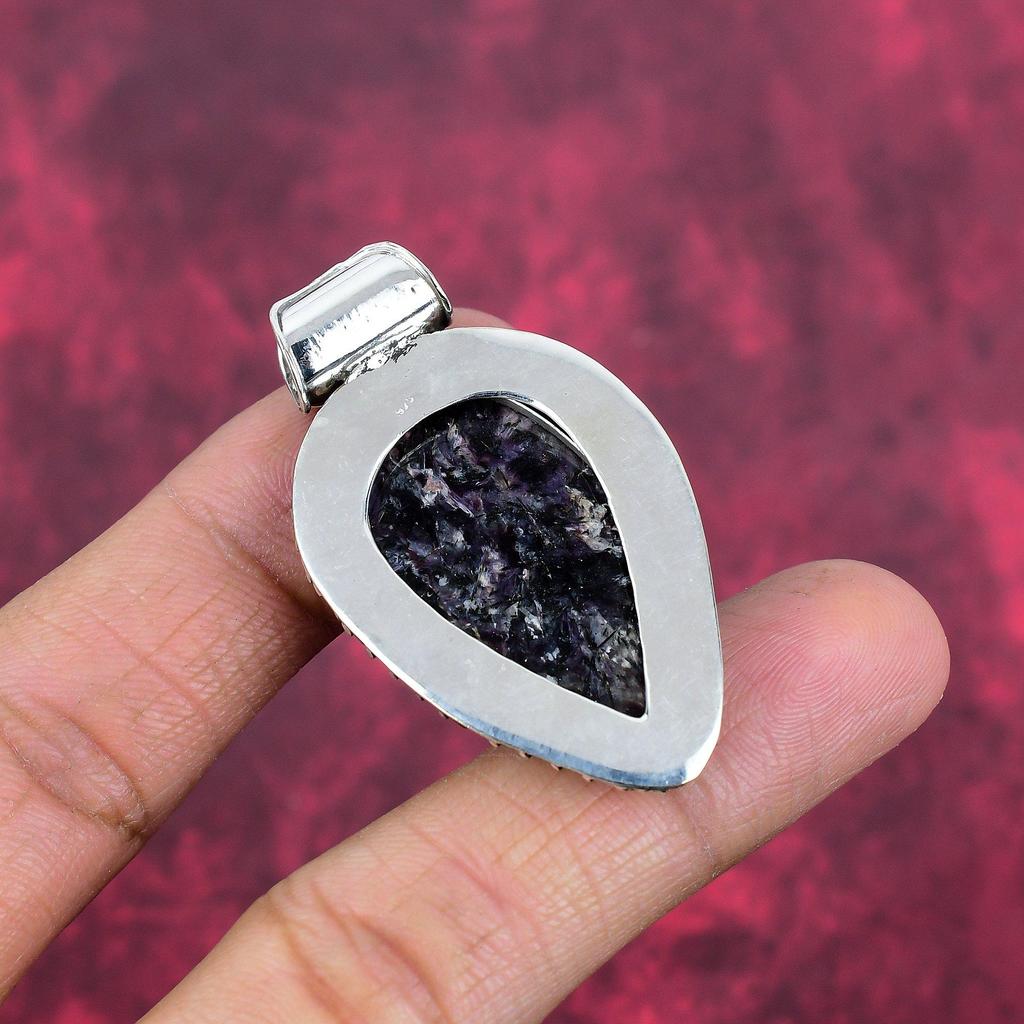 Подвеска из драгоценного камня чароит ручной работы, 925 пробы, серебряная подвеска, антикварная бижутерия, для подарка на помолвку